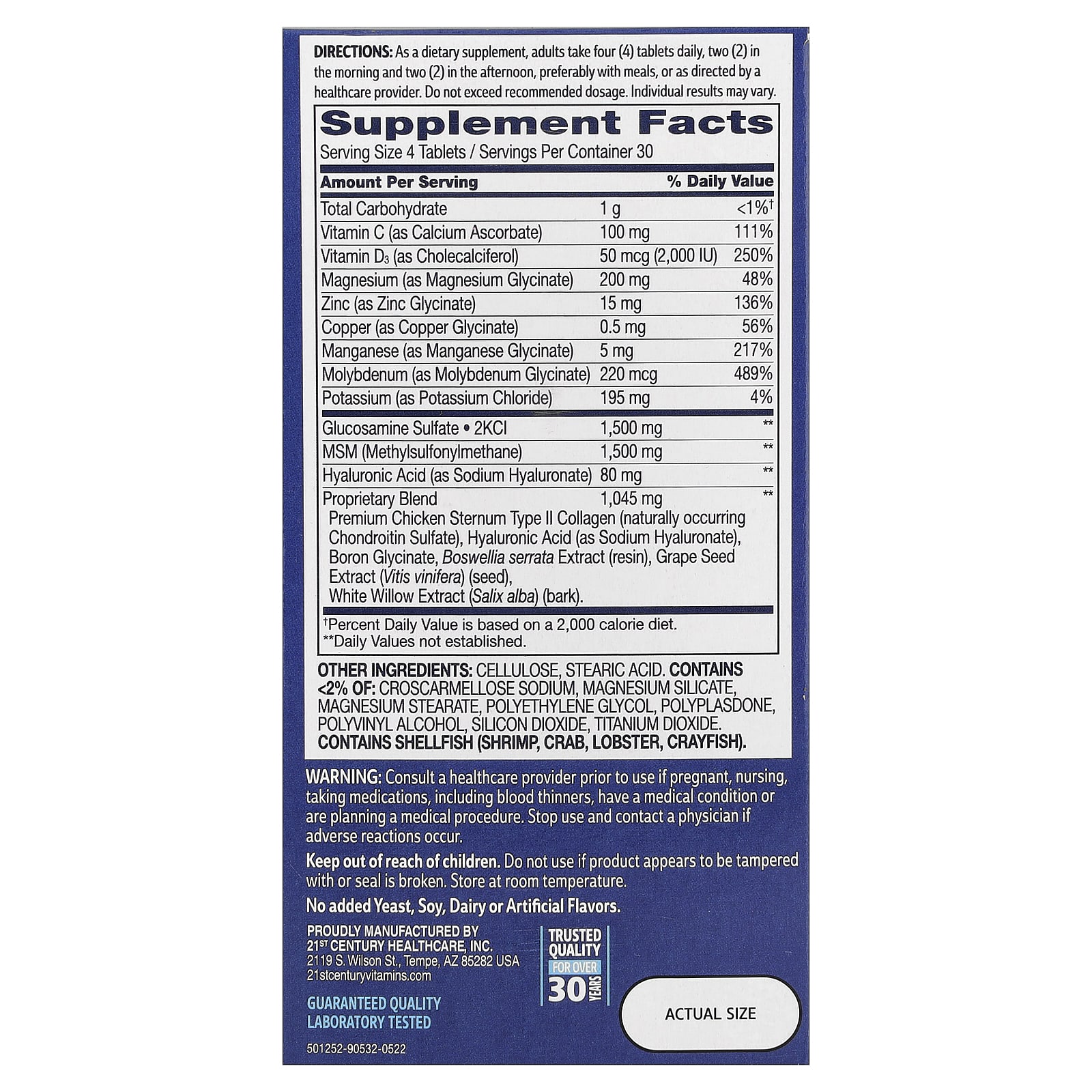 Cellulose, stearic acid. Contains <2% of: croscarmellose sodium, magnesium silicate, magnesium stearate, polyethylene glycol, polyplasdone, polyvinyl alcohol, silicon dioxide, titanium dioxide.Contains shellfish (shrimp, crab, lobster, crayfish).No added yeast, soy, dairy or artificial flavors.