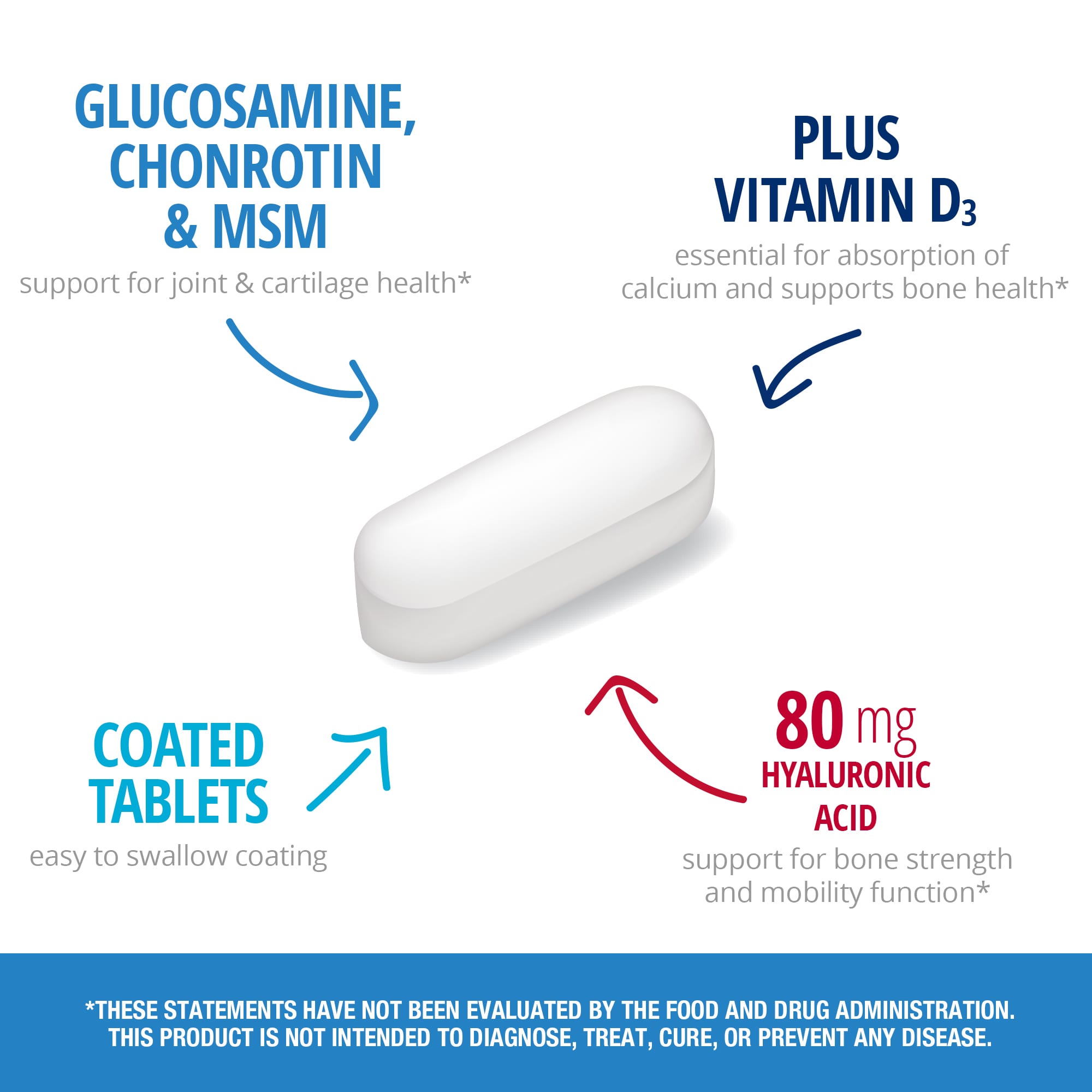 Non-GMO Gluten FreeGlucosamine, Chondroitin, MSM & Hyaluronic Acid Flexibility SupportVitamin D3 for Bone Health80 mg Hyaluronic Acid Per ServingJoint & Cartilage SupportBovine FreeDietary SupplementGuaranteed Quality Laboratory TestedTrusted Quality for Over 30 YearsArthri-Flex® Advantage + Vitamin D3, developed from joint nutrition science to support the comfort, flexibility and mobility of the body’s joints.Arthri-Flex Advantage + Vitamin D3 was developed as a multi-nutrient supplement that may support joint health and flexibility. Arthri-Flex Advantage +Vitamin D3 combines Glucosamine Sulfate & MSM (Methylsulfonylmethane) with our Proprietary Blend of premium Chicken Sternum Type II Collagen (naturally containing Chondroitin Sulfate), Hyaluronic Acid, herbal extracts, and mineral nutrients, that may work in synergy to support both joints & cartilage. Plus Vitamin D3 for its bone support potential.Take The Advantage!Supports Joint & Cartilage HealthVitamin D3 for Bone HealthPromotes Normal Mobility FunctionSupport From The Inside OutA combination of Glucosamine Sulfate and MSM along with our Proprietary Blend for supporting an active lifestyle.Glucosamine Sulfate: Glucosamine supports flexibility and mobility. It also supports the formation of cartilage, an important element in joint health.Chondroitin: In joint support applications, Chondroitin Sulfate helps to support joint fluids and their ability to cushion and lubricate.MSM: A source of sulfur, MSM may promote the formation of collagen, an important component in the structure of cartilage and is vital for joints.Hyaluronic Acid: This primary component is the backbone of the body’s joint lubrication fluids.Arthri-Flex® Proprietary Blend: Premium Chicken Sternum Type II Collagen is a protein that has been studied for its ability to support joints and joint function. It also naturally contains Chondroitin Sulfate.