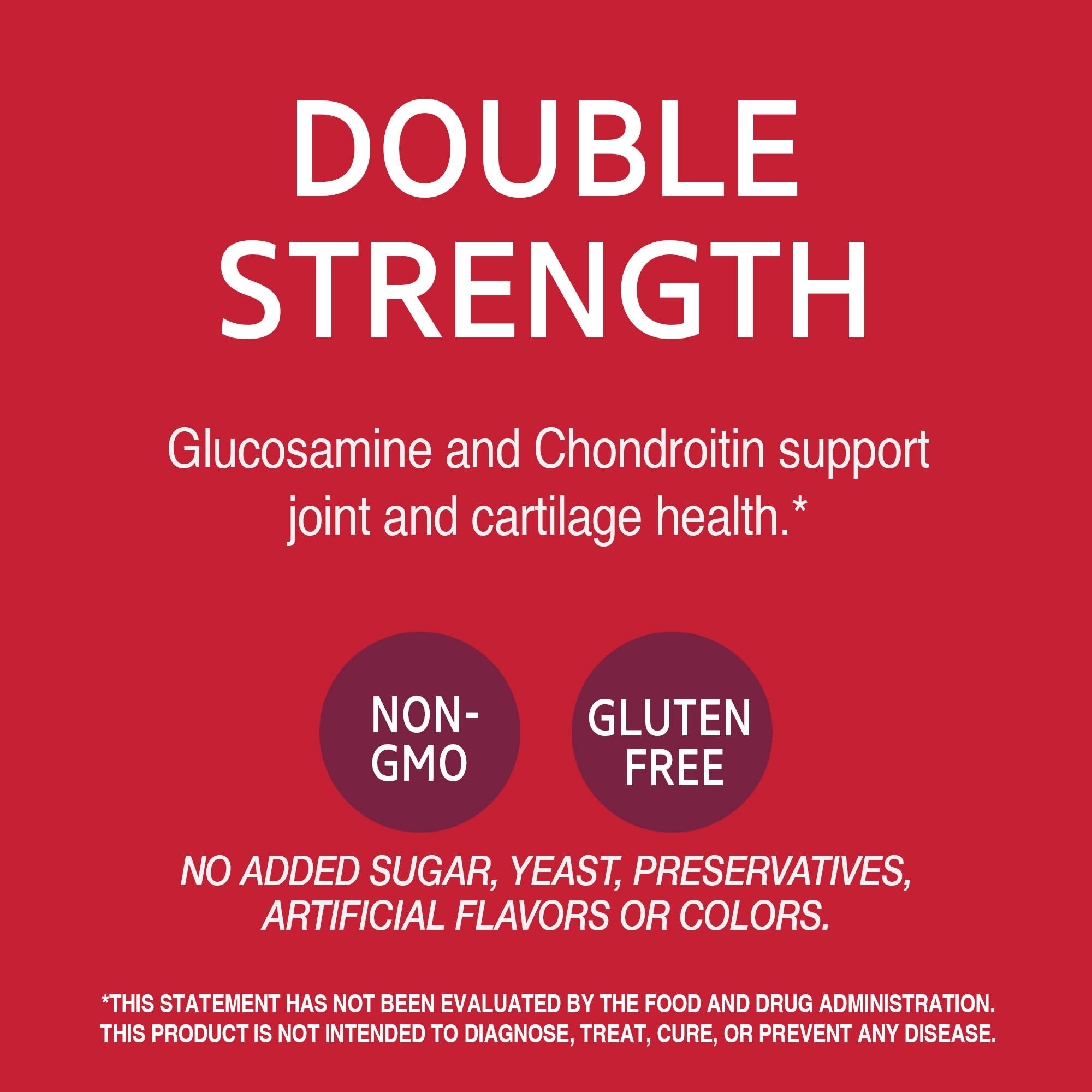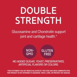 Double Strength500 mg | 400 mg3 Capsules DailyJoint Health SupportDietary SupplementGluten FreeNon-GMOGuaranteed Quality Laboratory TestedTrusted Quality For Over 30 YearsGlucosamine and Chondroitin support joint and cartilage health.