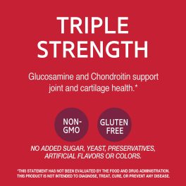 Triple StrengthGlucosamine 750 mg | Chondroitin 600 mg2 Tablets DailyJoint Health SupportDietary SupplementGluten FreeNon-GMOGuaranteed Quality – Laboratory TestedTrusted Quality For Over 30 YearsGlucosamine and Chondroitin supports joint and cartilage health.