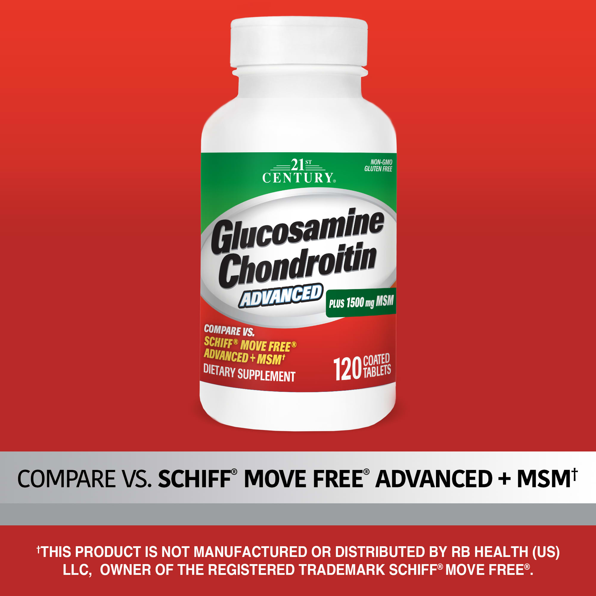 Non-GMOGluten FreePlus 1500 mg MSMCompare VS. Schiff® Move Free® Advanced + MSMDietary SupplementLaboratory TestedGuaranteed QualityTrusted Quality for Over 30 YearsGlucosamine & Chondroitin Advanced Plus MSM for joint and cartilage support.