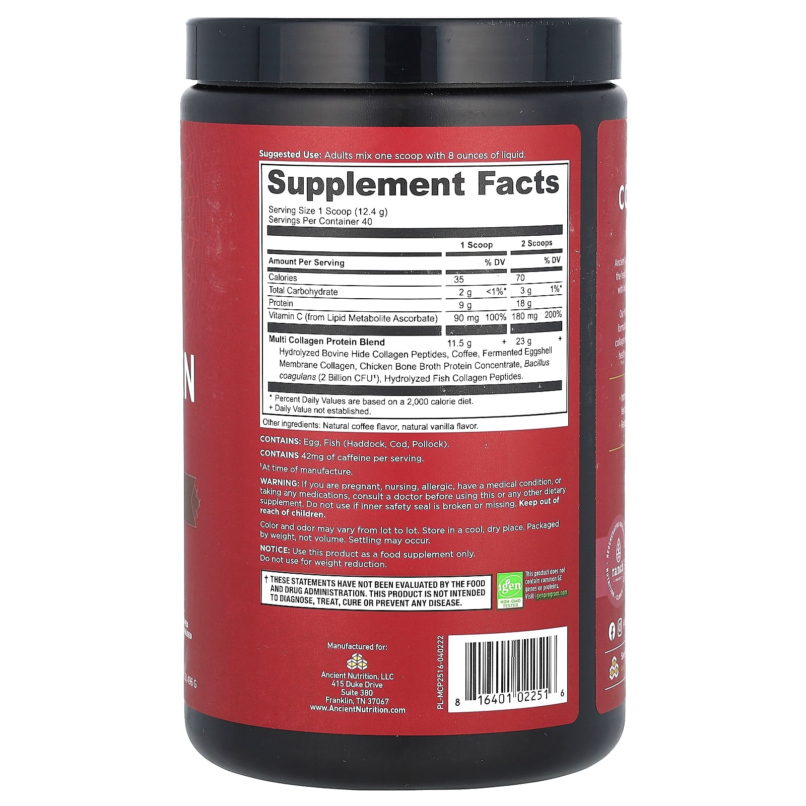 Clinically Studied Ingredients10 Types of CollagenHealthy Energy Support20 g Collagen Per 2 ScoopsGrass-Fed Pasture RaisedIgen™ Non-GMO TestedWhole Food Dietary SupplementSkinGutNailsHairJointsR.A.N.C.H. Project ™ Save the World with SuperfoodsAncient Nutrition has one goal-to transform the health of every individual on the planet with history’s most powerful superfoods. Our Multi Collagen Protein is uniquely formulated with 10 types of food source collagen and is clinically proven to promote healthy hair, skin, joints and digestion.Improves the appearance of crow’s feet after 4 weeks Reduces joint discomfort in 7 days