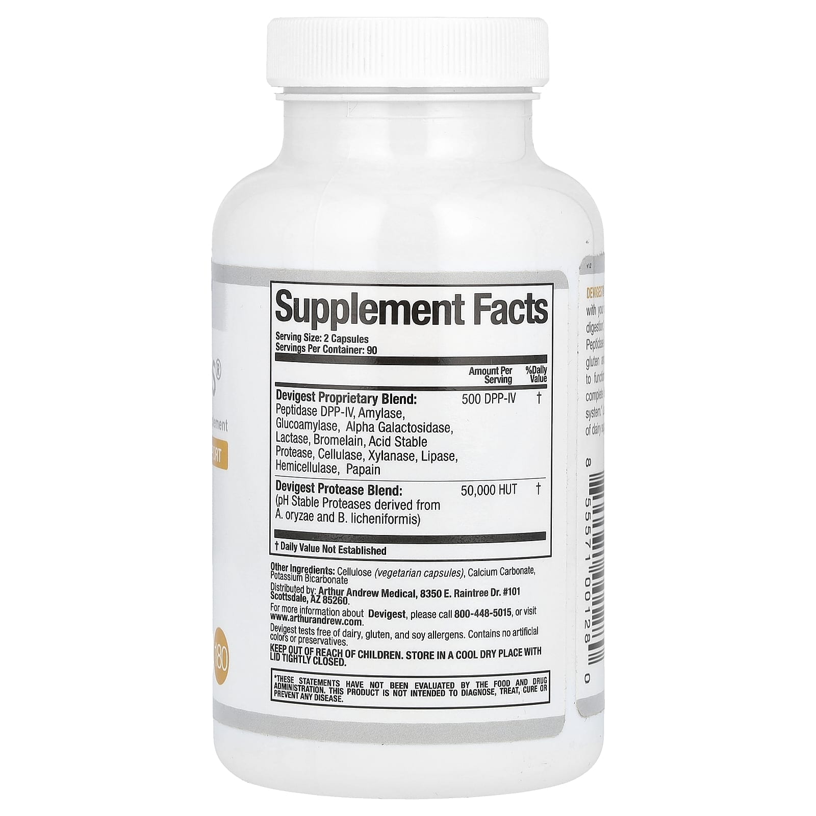 Dietary SupplementReduced Occasional Gas/BloatingNormalized Gluten ToleranceReduced Food Irritations/SensitivitiesHealthy Gastrointestinal pH Certified VegetarianKosher Star-KNon GMO Tested DEVIGEST® Advanced Digestive Support works with your digestive system to support comfortable digestion. DEVIGEST features a unique Dipeptidyl Peptidase (DPP-IV) enzyme that specifically targets gluten and casein. It has also been enhanced to function over a broad pH range, allowing for complete digestion throughout the entire digestive system. Lactase is included for adequate digestion of dairy sugars and alpha galactosidase supports the digestion of gassy foods, decreasing the amount of flatulence, abdominal bloating and digestive discomfort.