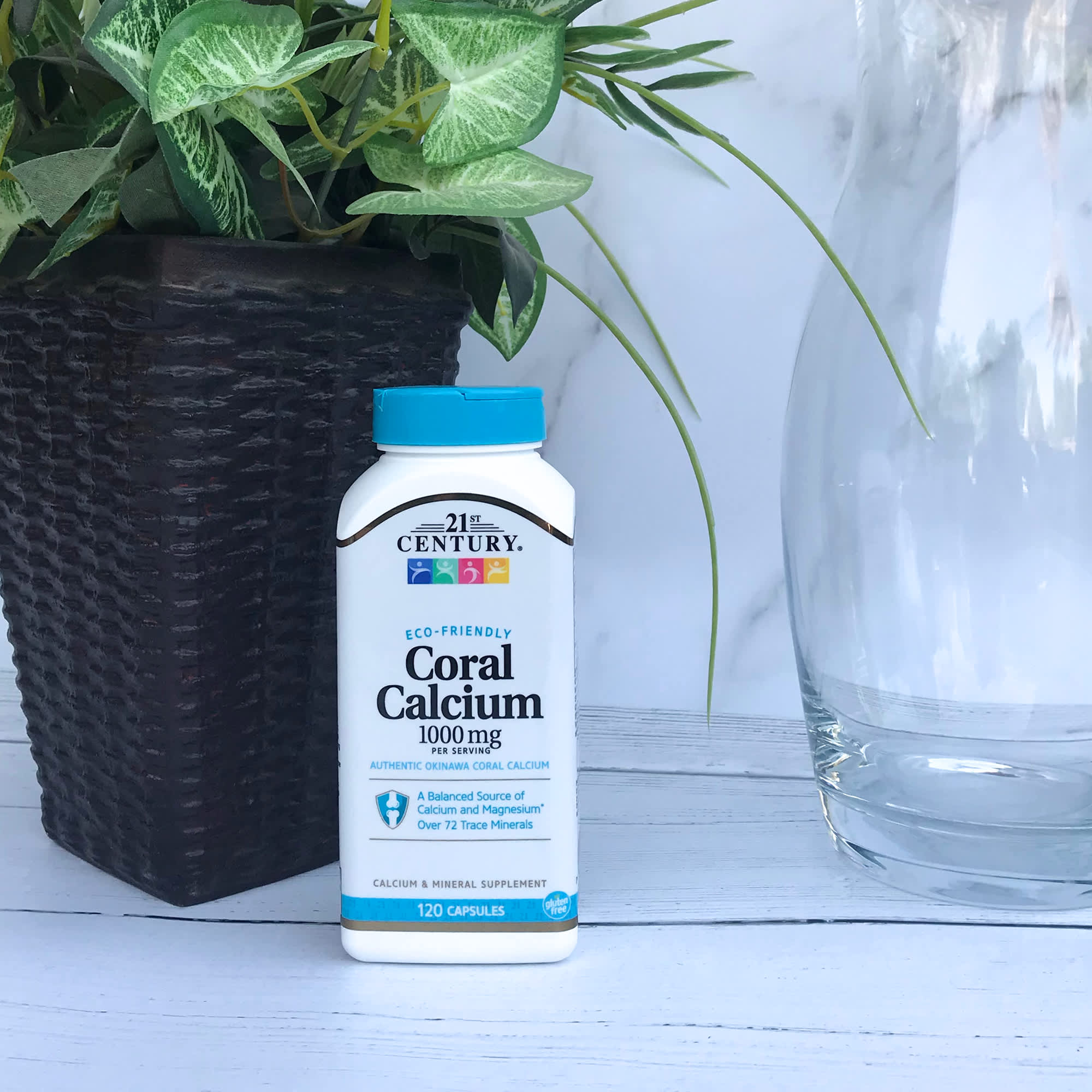 Eco-Friendly1000 mg Per ServingAuthentic Okinawa Coral CalciumA Balanced Source of Calcium and Magnesium Over 72 Trace MineralsCalcium & Mineral SupplementGluten FreeNo Added Salt, Yeast or Artificial FlavorLaboratory Tested – Guaranteed QualityCoral Calcium has the ideal calcium to magnesium ratio of 2:1 that supports bone health and heart, nerve and muscle function. No live coral was harmed in the harvesting of 21st Century’s Eco-Friendly Coral Calcium.