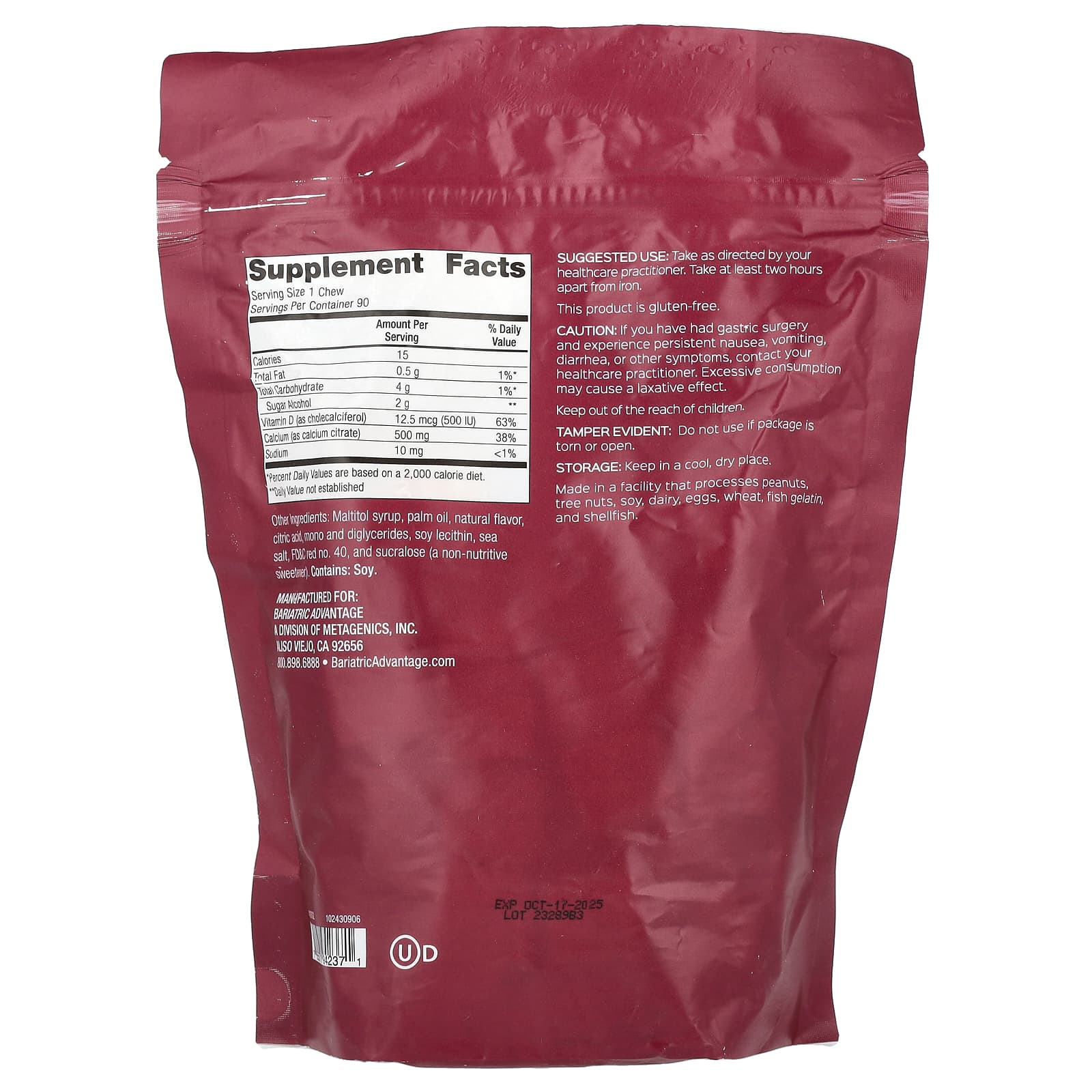 Bariatric Advantage, Calcium Citrate Chewy Bite, Sugar-Free, Strawberry, 90 Soft Chews