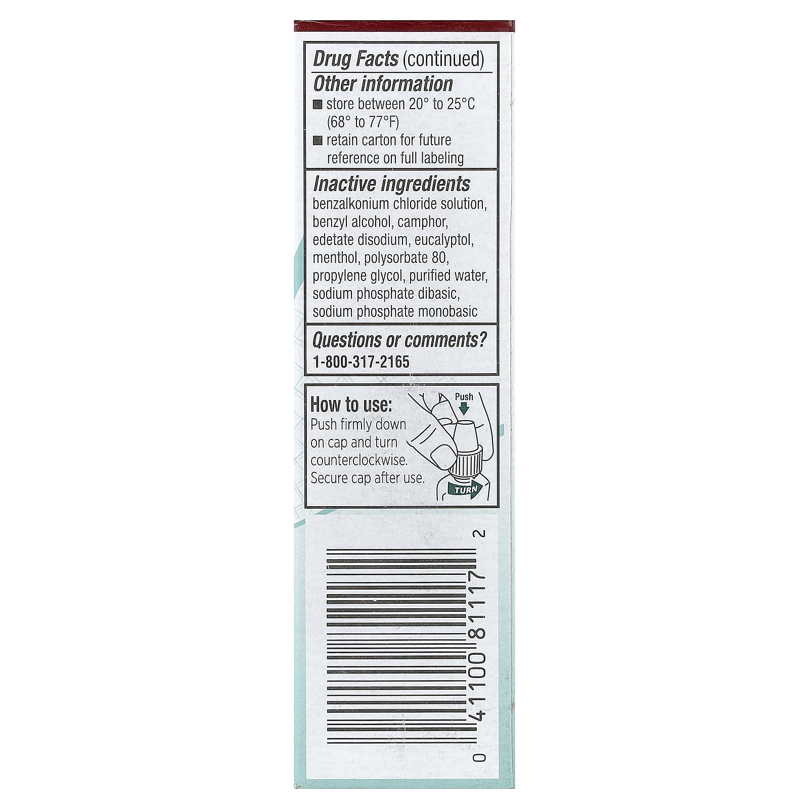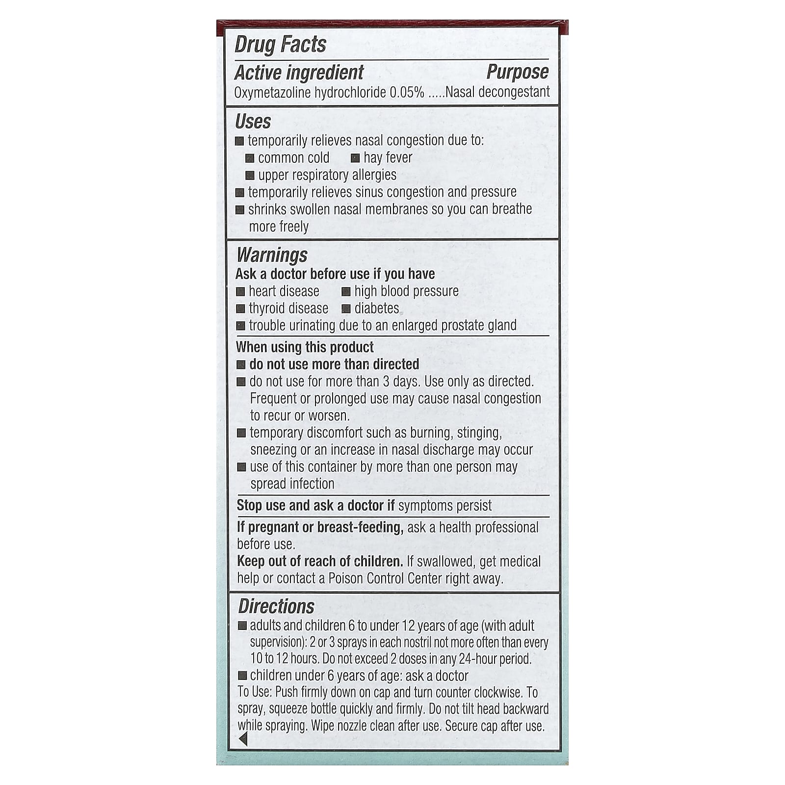 Drug FactsActive IngredientPurposeOxymetazoline hydrochloride 0.05% Nasal decongestantInactive IngredientsBenzalkonium chloride solution, benzyl alcohol, camphor, edetate disodium, eucalyptol, menthol, polysorbate 80, propylene glycol, purified water, sodium phosphate dibasic, sodium phosphate monobasic.