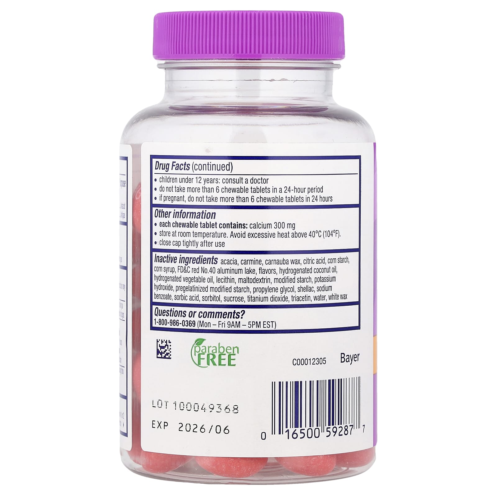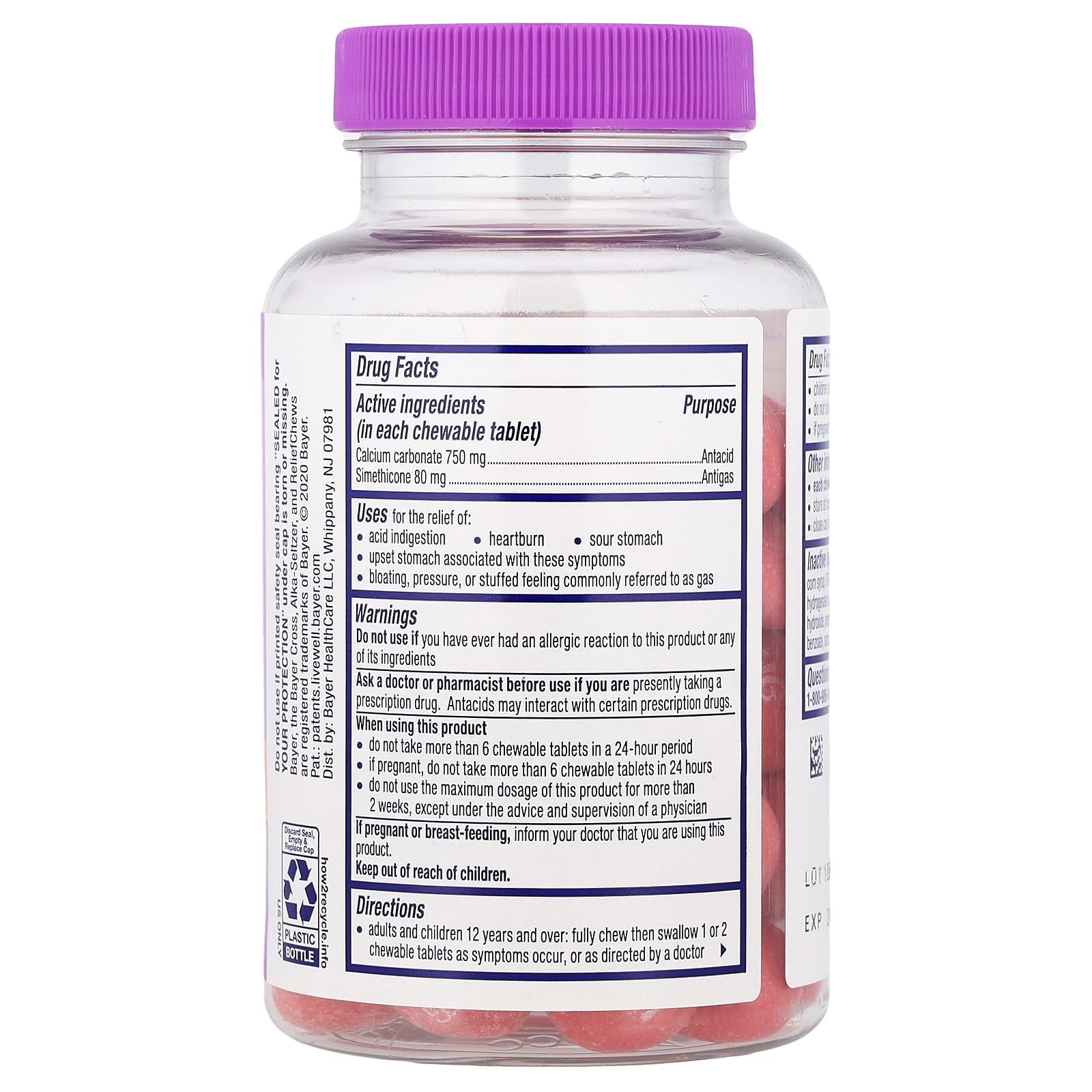 Drug FactsActive Ingredients (in each chewable tablet)PurposeCalcium carbonate 750 mgSimethicone 80 mcgAntacidAntigasInactive Ingredients: Acacia, carmine, carnauba wax, citric acid, corn starch, corn syrup, FD&C red No.40 aluminum lake, flavors, hydrogenated coconut oil, hydrogenated vegetable oil, lecithin, maltodextrin, modified starch, potassium hydroxide, pregelatinized modified starch, propylene glycol, shellac, sodium benzoate, sorbic acid, sorbitol, sucrose, titanium dioxide, triacetin, water, white wax.Each chewable tablet contains: calcium 300 mg.