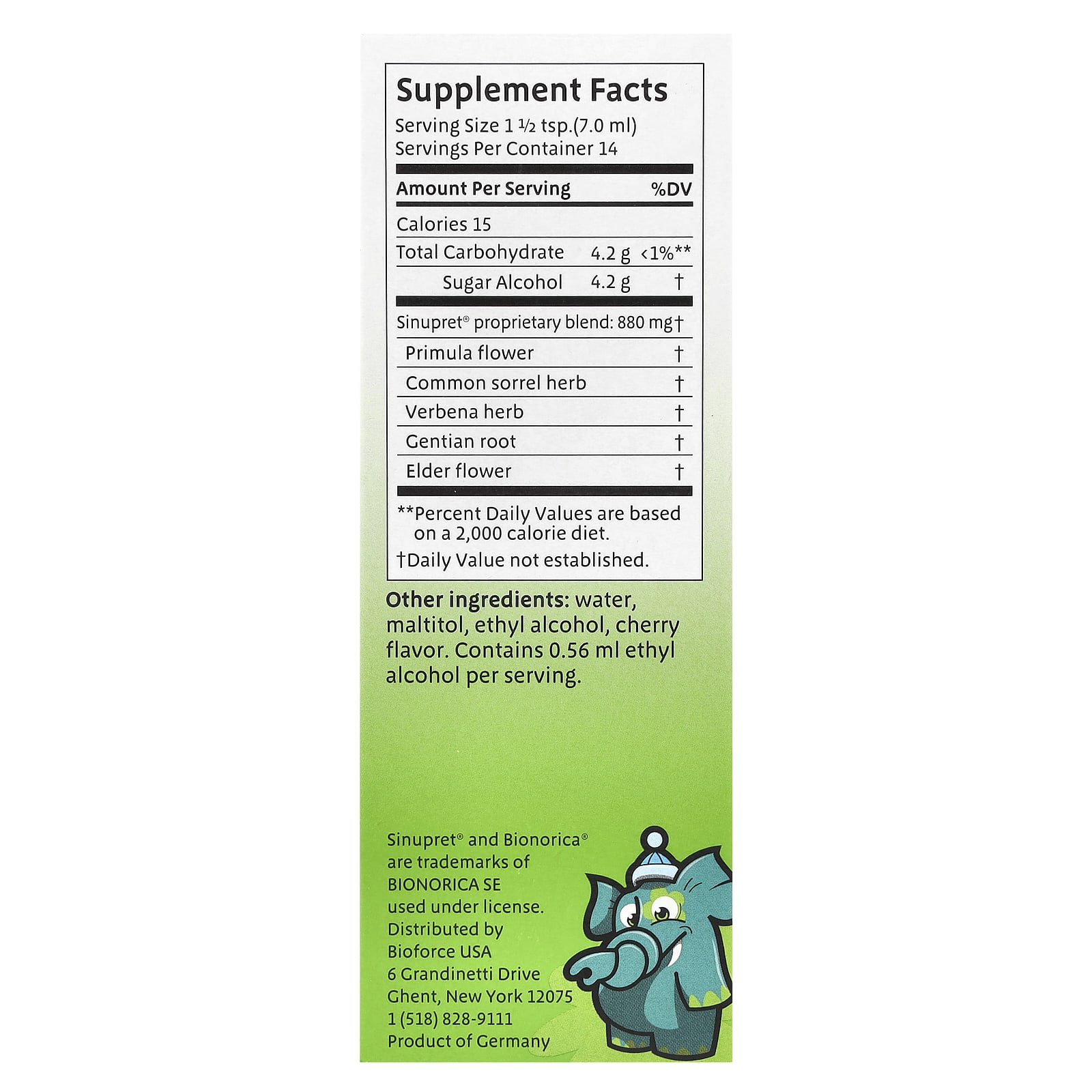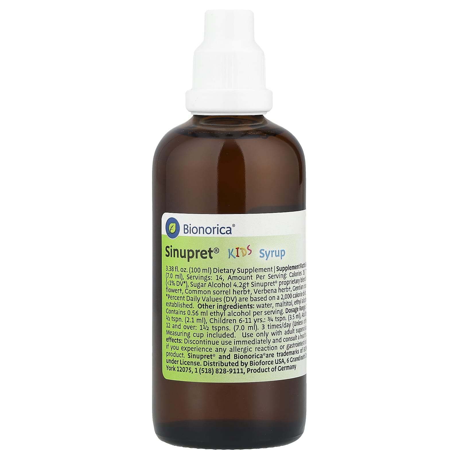 Do not take Sinupret® Kids Syrup if you are hypersensitive to one of the active ingredients or to any other ingredient of the product. At first sign of hypersensitivity reaction Sinupret® Kids syrup must not be taken again.Possible side effects: Discontinue use immediately and consult a health care practitioner if you experience any allergic reaction or gastrointestinal distress to this product.Pregnancy and breast-feeding: Not recommended for pregnant or lactating women or women planning to become pregnant.Store in a dry cool place. Use only with adult supervision.