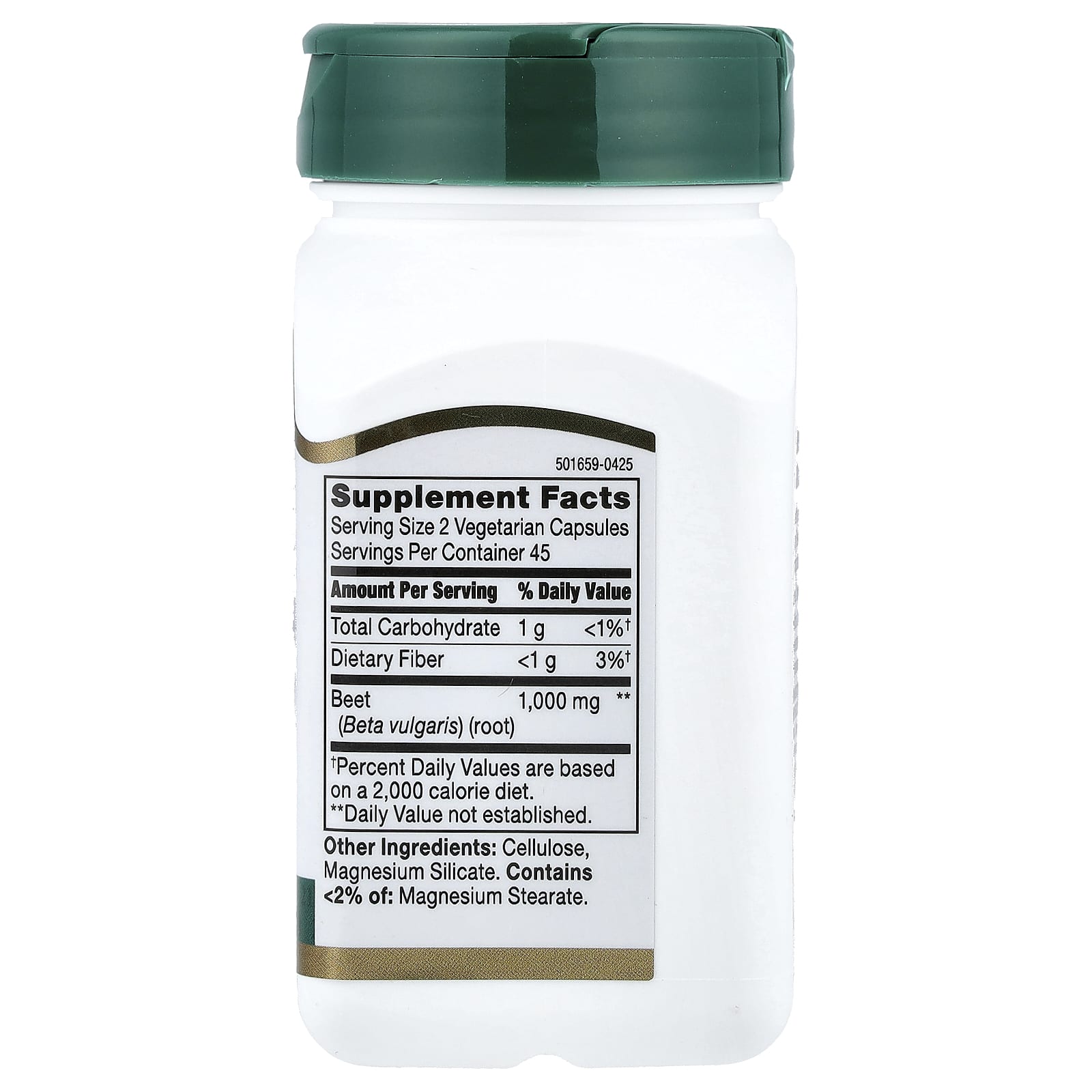 Traditional1,000 mg Per ServingFor General Health & WellnessHerbal SupplementGluten FreeNon-GMOVegan FriendlyGuaranteed QualityLaboratory TestedTrusted Quality For over 30 YearsPacked with the goodness of nutrient-rich beets. 21st Century Beet Root capsules offer a convenient way to incorporate this superfood into your daily routine.