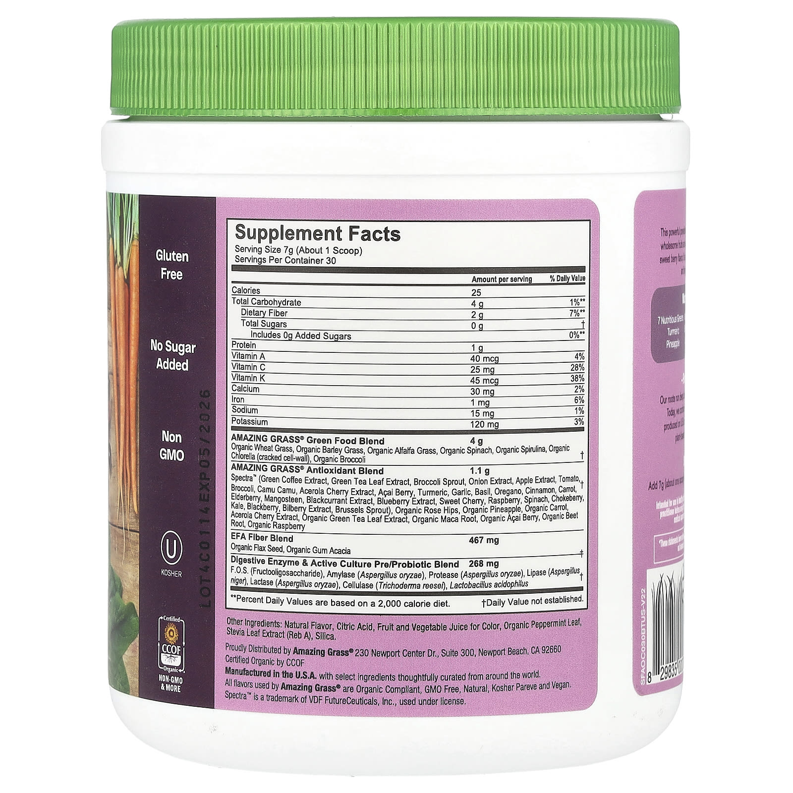 Amazing Grass, Green Blend, Antioxidant, Sweet Berry, 7.4 oz (210 g)