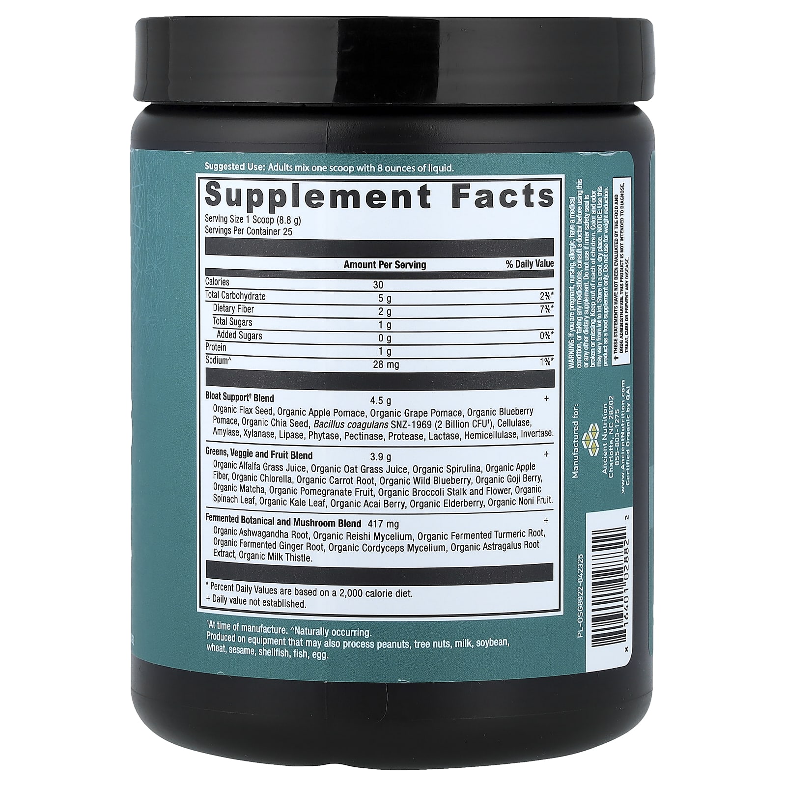 Ancient Nutrition, Organic Super Greens, Bloat Relief, 7.8 oz (220 g)
