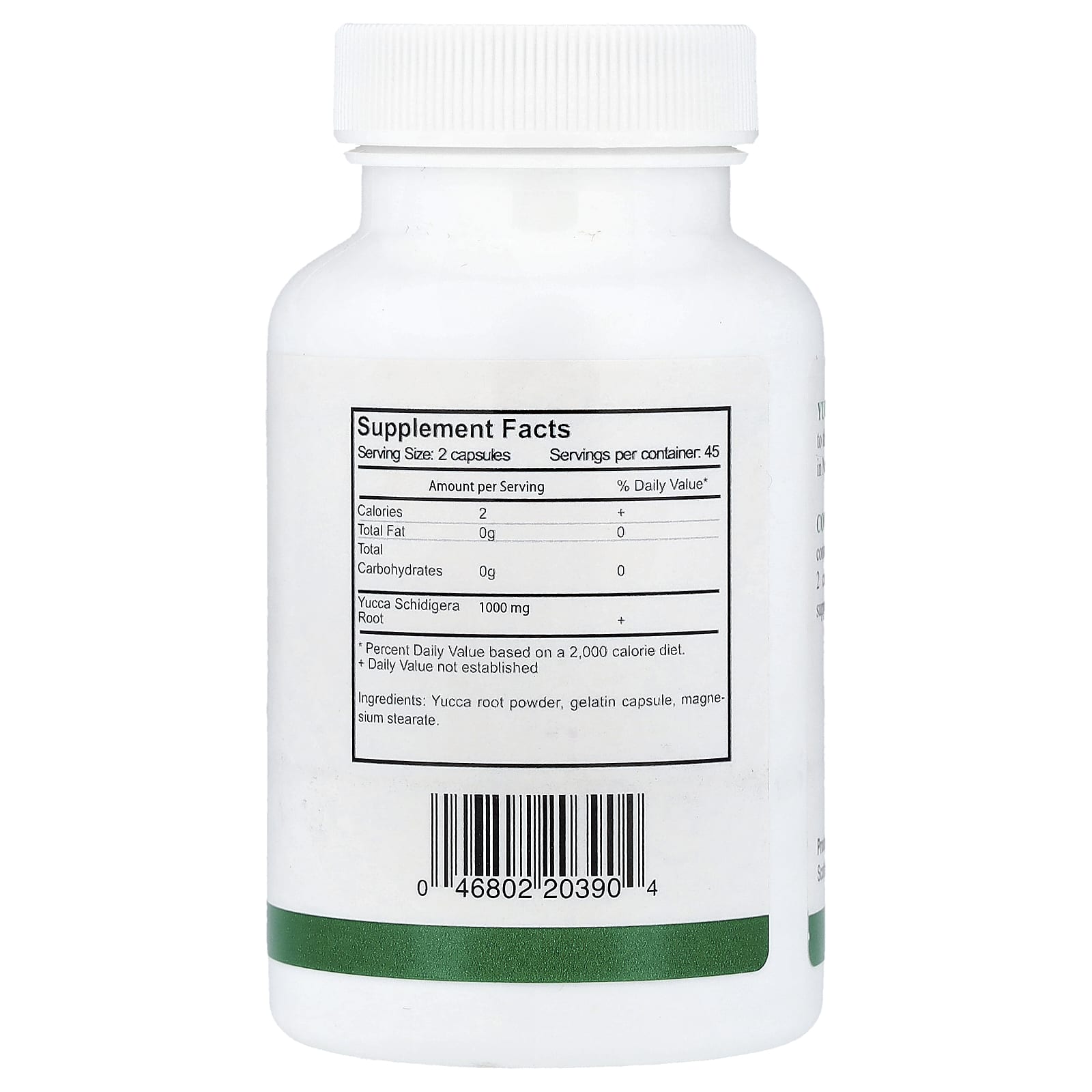 Yucca root powder, gelatin capsule, magnesium stearate. Each capsule contains 500 mg yucca schidigera root.