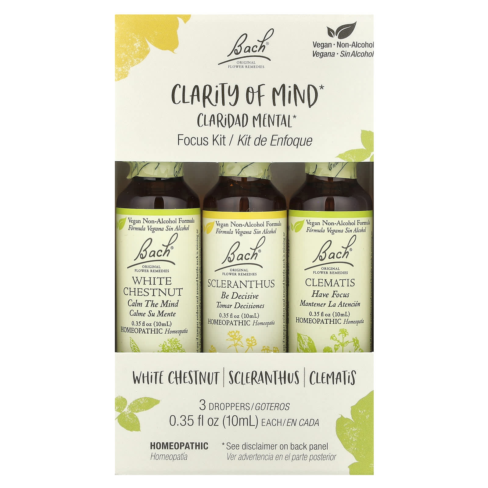 Bach, Original Flower Remedies, Focus Kit, Clarity of Mind, 3 Droppers, 0.35 fl oz (10 ml) Each