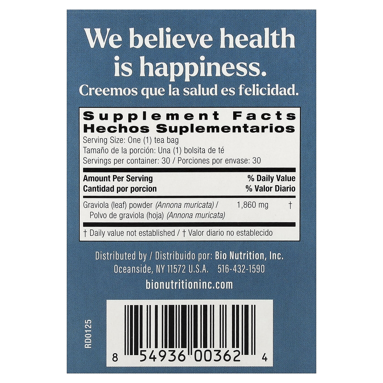 Bio Nutrition, Graviola Tea, Caffeine Free, 30 Tea Bags, 2 oz (56 g)