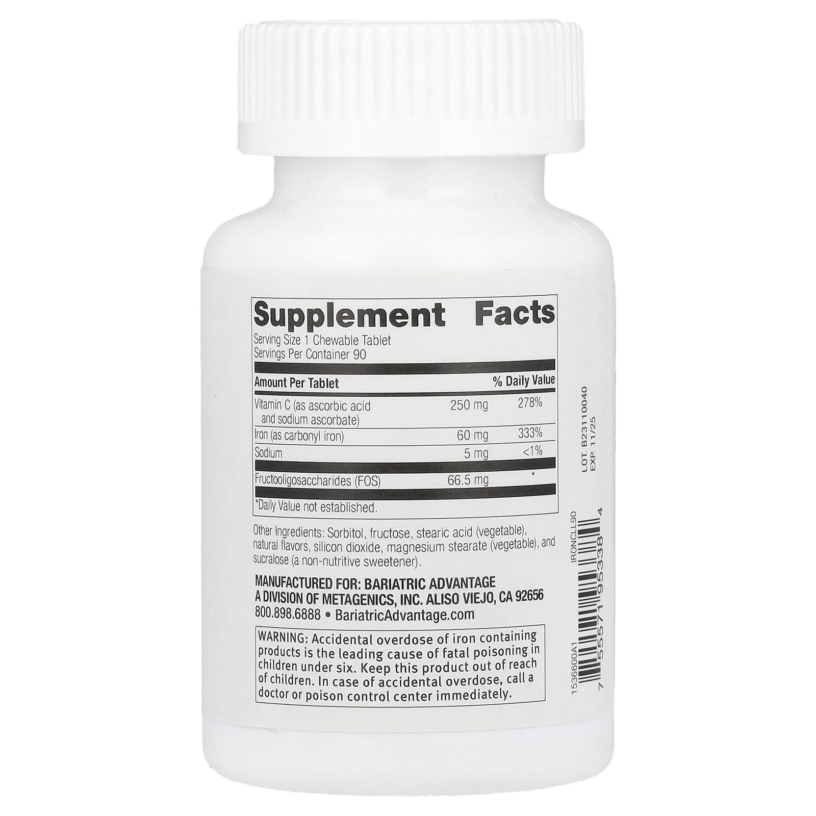 Bariatric Advantage, Chewable Iron with Vitamin C, Lemon & Lime, 60 mg, 90 Tablets