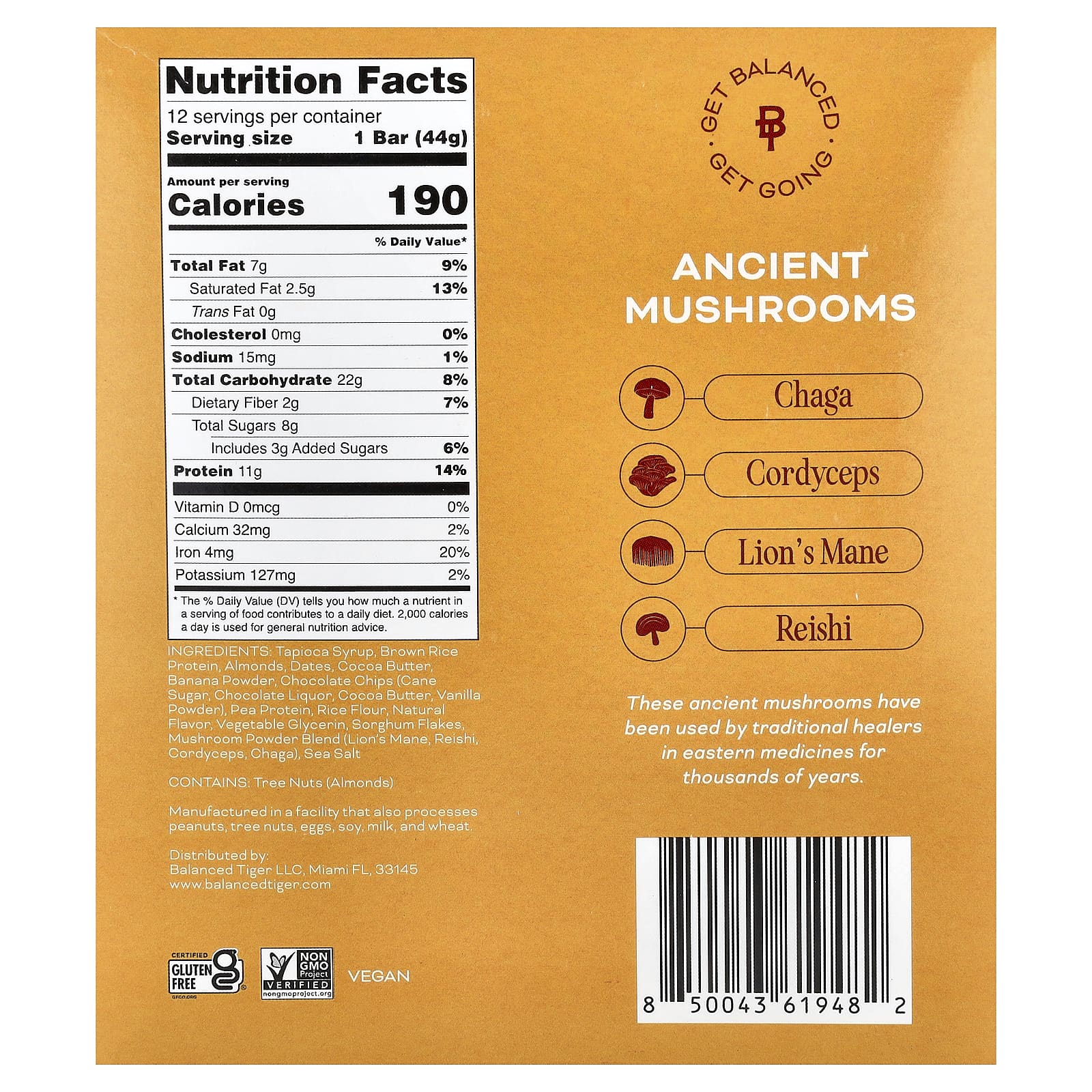 Balanced Tiger, Protein Bar, Banana Chocolate Chip, 12 Bars, 1.55 oz (44 g) Each