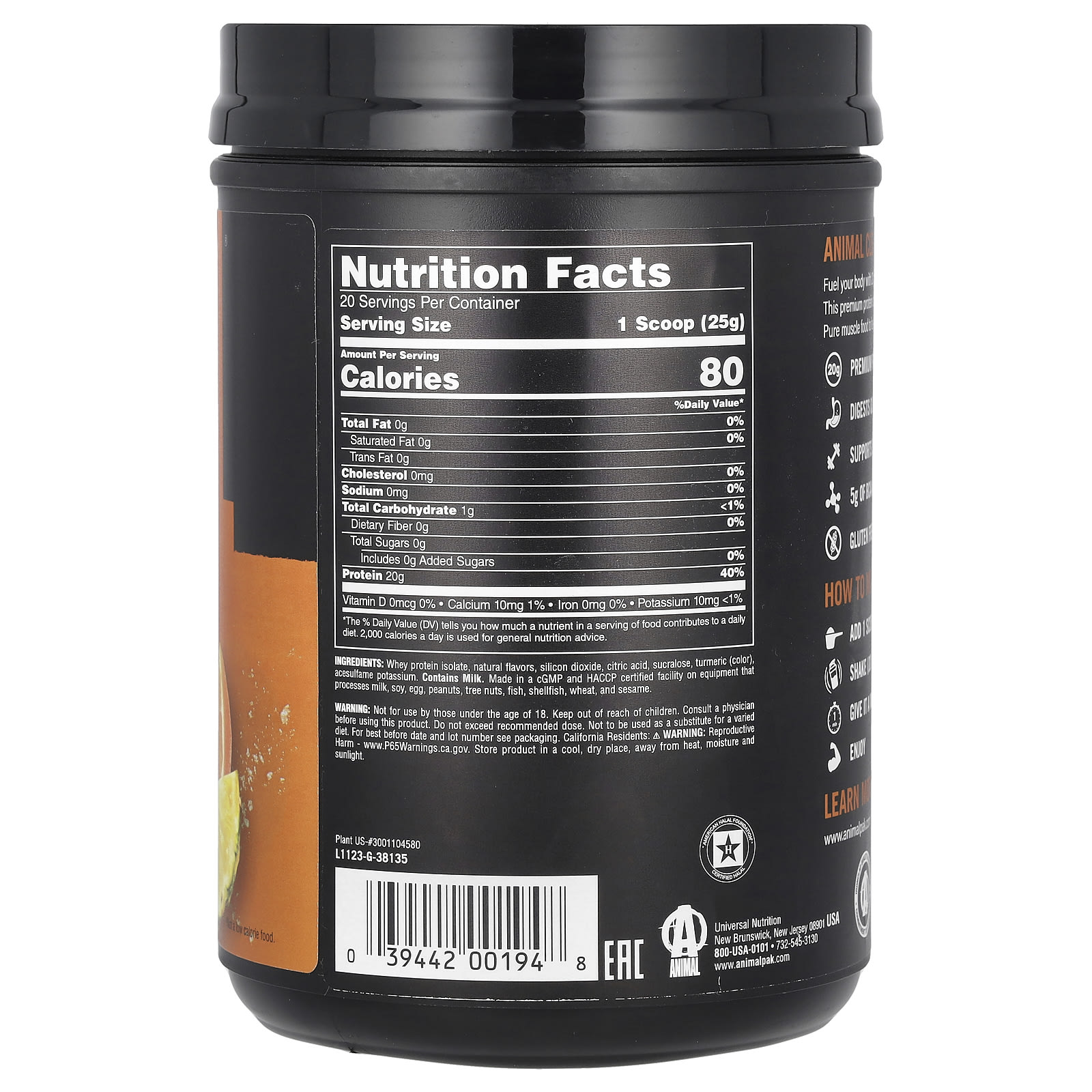 Animal, Clear Whey Isolate, Pineapple Orange, 1.1 lb (500 g)
