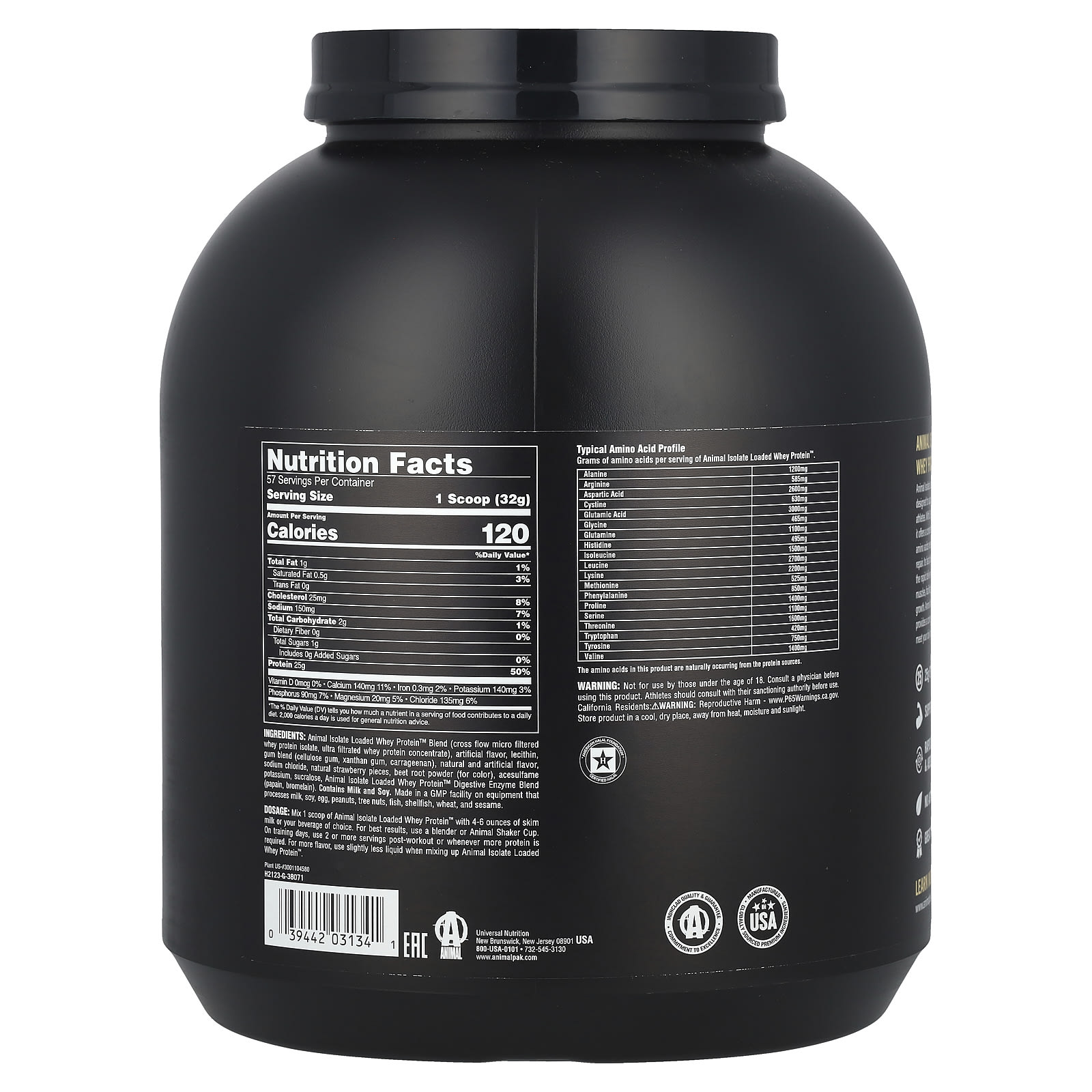 Animal, Isolate Loaded Whey Protein Powder, Strawberry, 4 lb (1.81 kg)