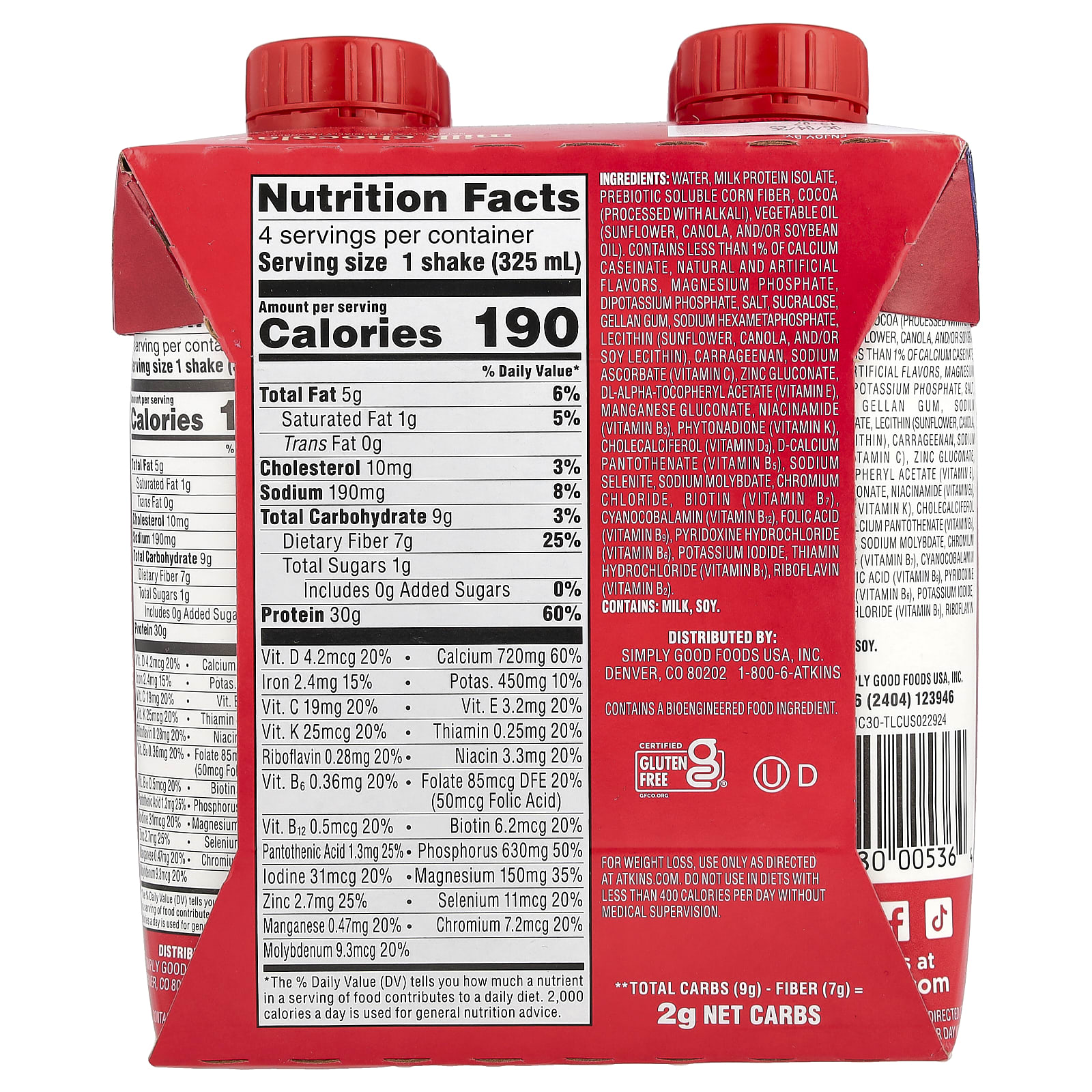 Atkins, Strong, High Protein Shake, Milk Chocolate, 4 Shakes, 11 fl oz (325 ml) Each
