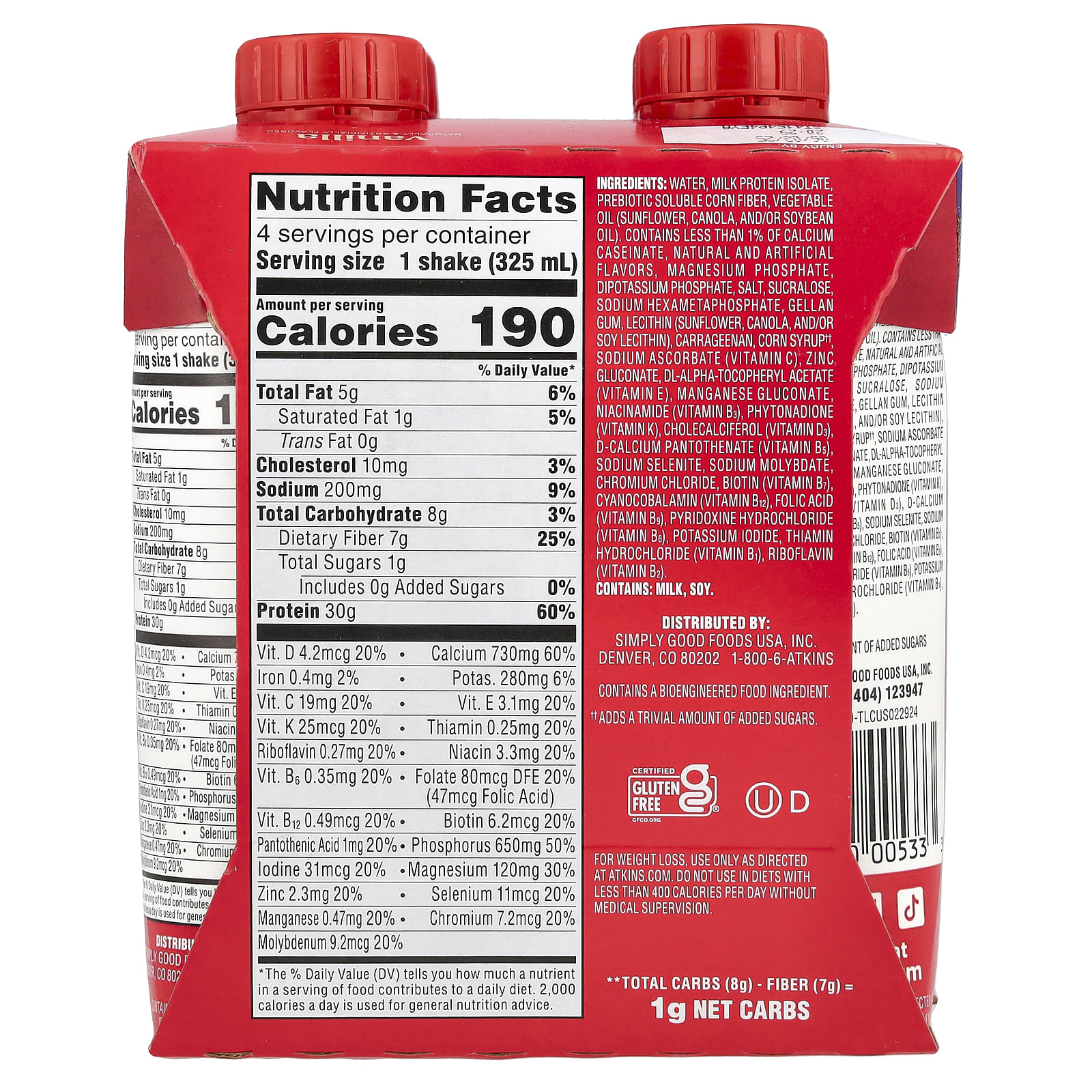 Atkins, Strong, High Protein Shake, Vanilla, 4 Shakes, 11 fl oz (325 ml) Each