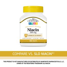 Compare Vs. Slo-Niacin®Vitamin SupplementGluten FreeNon GMOGuaranteed Quality Laboratory TestedTrusted Quality for Over 30 YearsNiacin (vitamin B-3) supports energy metabolism, heart health and the nervous system. Prolonged release vitamins are designed to reduce flushing.