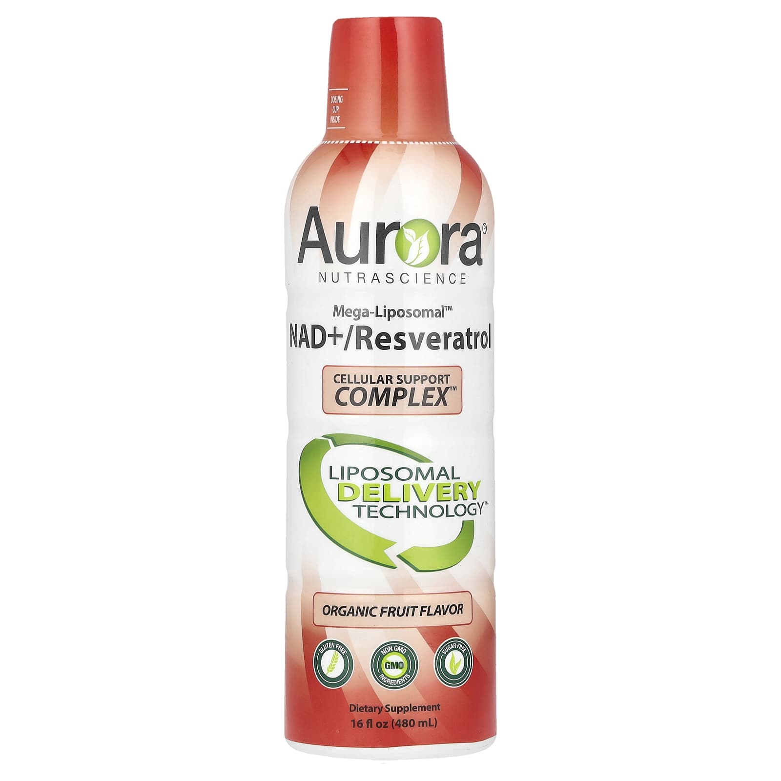 Dosing Cup InsideCellular Support Complex™Liposomal Delivery Technology™Gluten FreeNon GMO IngredientsSugar FreeDietary SupplementWhy use Mega-Liposomal™ NAD +/ Resveratrol?Our Mega-Liposomal™ NAD +/ Resveratrol nutrients are encapsulated into all-natural lipospheres. This helps to protect the nutrients while facilitating a more efficient transition through the digestive system and into the body’s bloodstream. We use only 100% organic fruit flavoring and natural stevia leaf extract to give our product a great taste that everyone can enjoy!