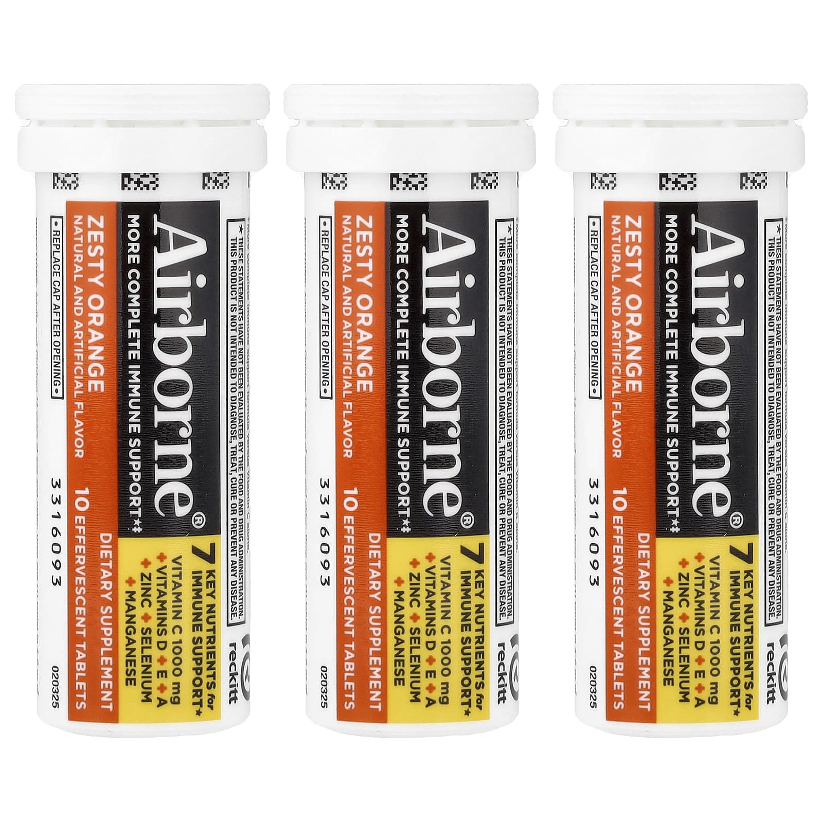 AirBorne, More Complete Immune Support Supplement, Zesty Orange, 3 Tubes, 10 Effervescent Tablets Each