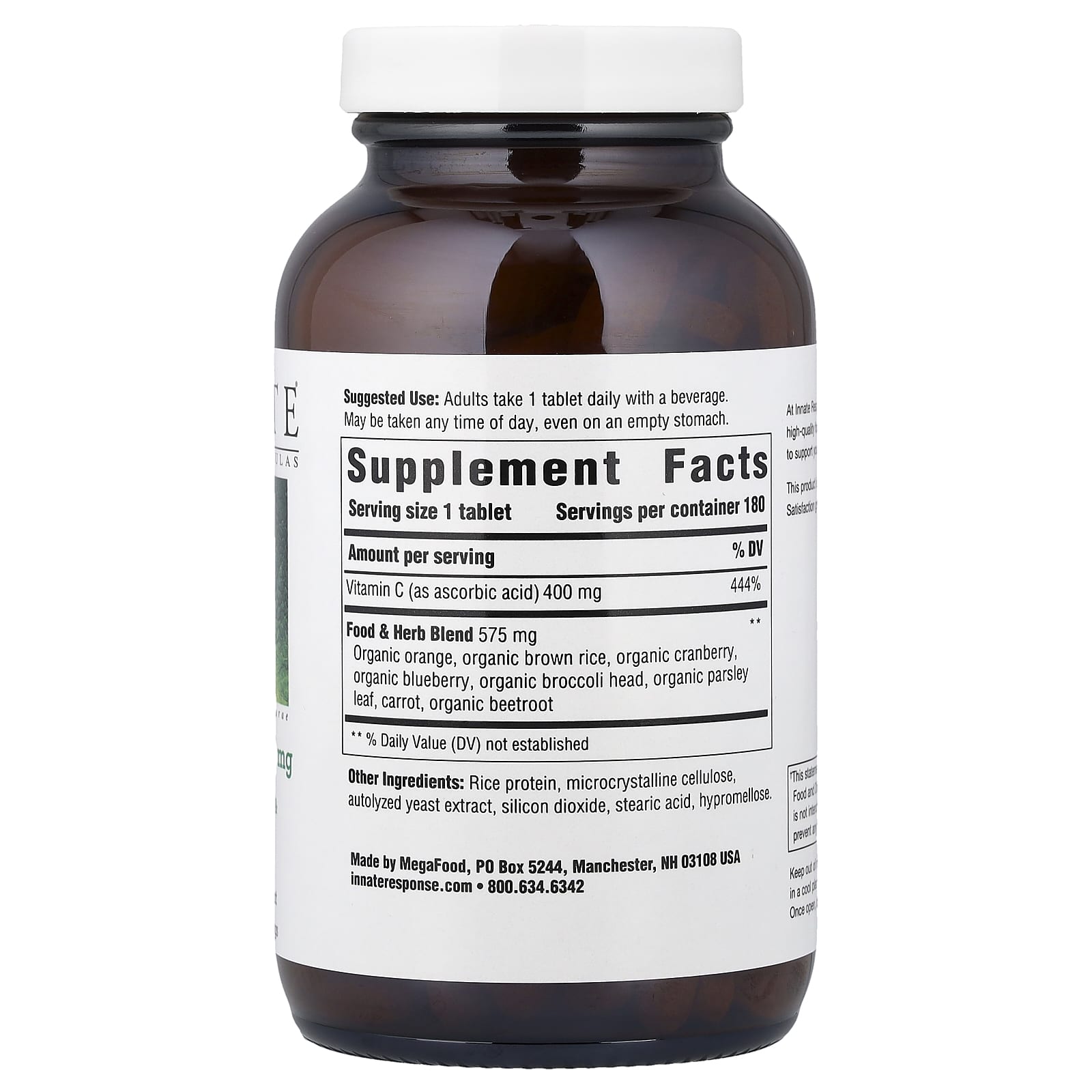 Promotes Immune & Cellular Health400 mg Dietary SupplementCertified B CorporationNon GMO Project VerifiedGlyphosate Residue FreeTested 125+ Pesticides & HerbicidesGluten FreeVeganKosherMade Without Dairy & Soy At Innate Response, we craft products that pair high-quality food and herbs with key nutrients to support your body’s innate well-being.This product is made with food-paired vitamins.