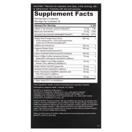 Precaution: Product contains 198 mg of caffeine per serving. Do not take near bedtime. Not recommended for use by children under 18 years of age. Consult your healthcare practitioner before use if you are pregnant, nursing, taking any medication or have a medical condition. Take product with food if you experience stomach upset. Discontinue use two weeks prior to surgery or if any serious adverse reaction occurs. Do not use if safety seal is missing.