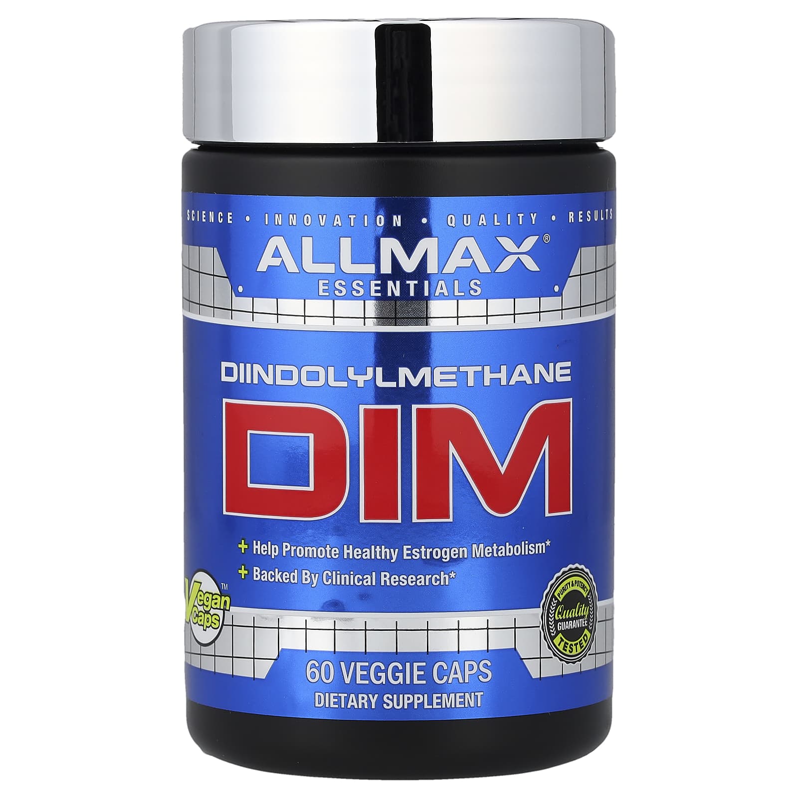 Science – Innovation – Quality – ResultsDiindolylmethaneHelps Promote Healthy Estrogen MetabolismBacked By Clinical ResearchPurity & Potency Tested – Quality GuaranteeDietary SupplementLab Tested – Every LotcGMP Registered FacilityVegan Caps™Non GMONo Proprietary Blends