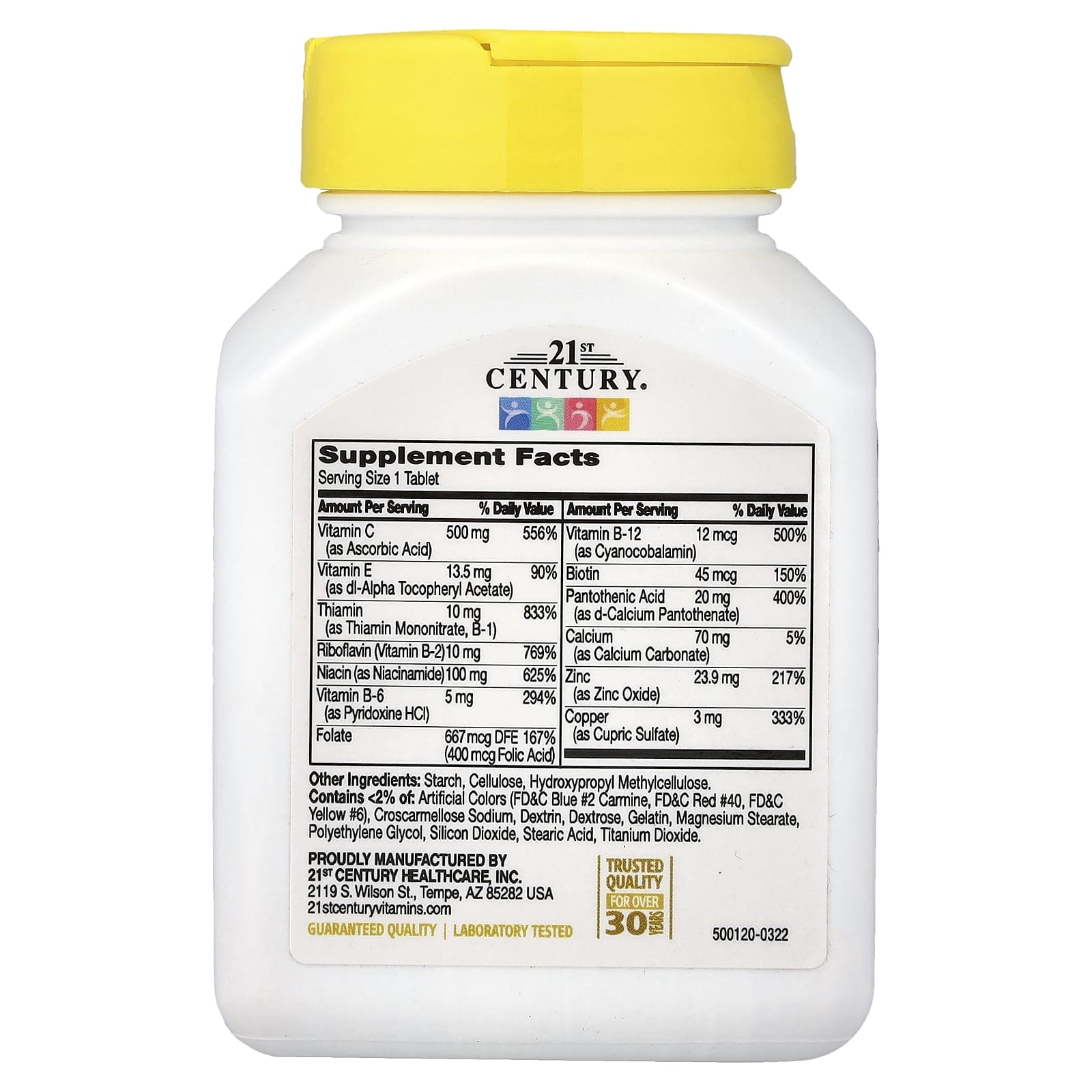 Energy & Immune SupportVitamin & Mineral SupplementGluten FreeNo Added Yeast or PreservativesGuaranteed QualityLaboratory TestedTrusted Quality for Over 30 YearsPeriods of stress can be taxing on the body. Combined with a healthy diet and plenty of rest, 21st Century Stress B helps provide the extra nutritional support your body may need.